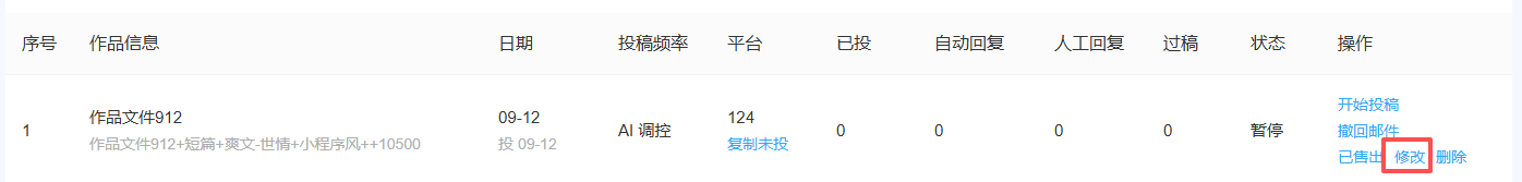 投稿168是通过投稿计划来管理作品投稿的,一个投稿计划对应一篇作品,不管分几次投稿,只会收 1 次费用,所以我们是可以分多轮投稿的,最终实现让作品呈现在更多的编辑面前。